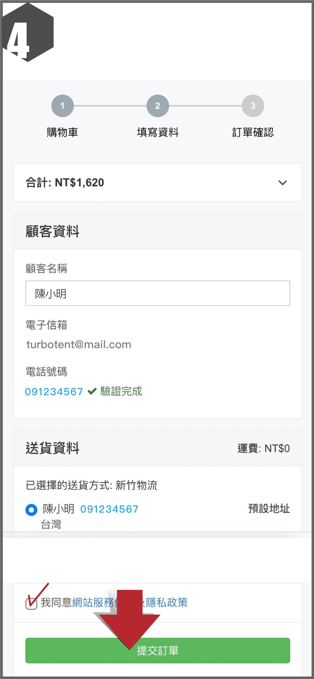 4.接下來進入填寫資料步驟,填寫完成後再提交訂單。
