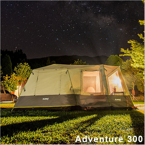 市面上的一房一廳結構,如文章開頭所述,有穿骨型態(又分為環形隧道形式/dome tent交叉桿形式),印第安帳(一竿帳中柱形式),Ezup剪刀腳形式需要加掛尾帳,與我們Turbo專利快速帳形式。