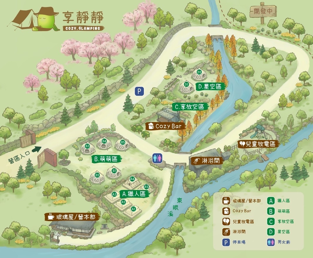 享靜靜位於新北市三峽區的山區中,總共有六頂Basecamp 450 和 五頂阿巴斯狩獵帳!帳內都有佈置除濕機 冷暖空調,廁所乾淨整齊。
