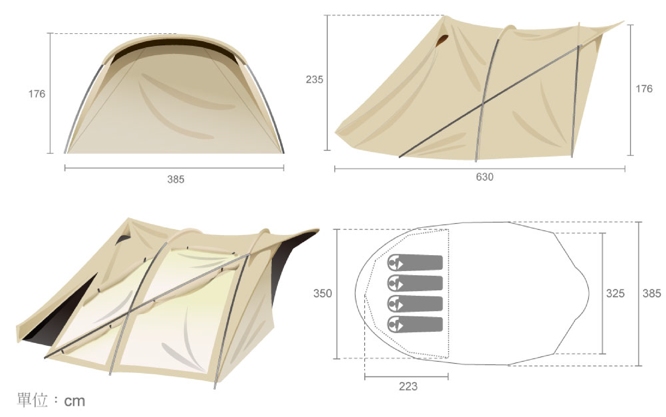 1.三角形外型,傾斜面坡度較陡,雨天進出帳容易進水。