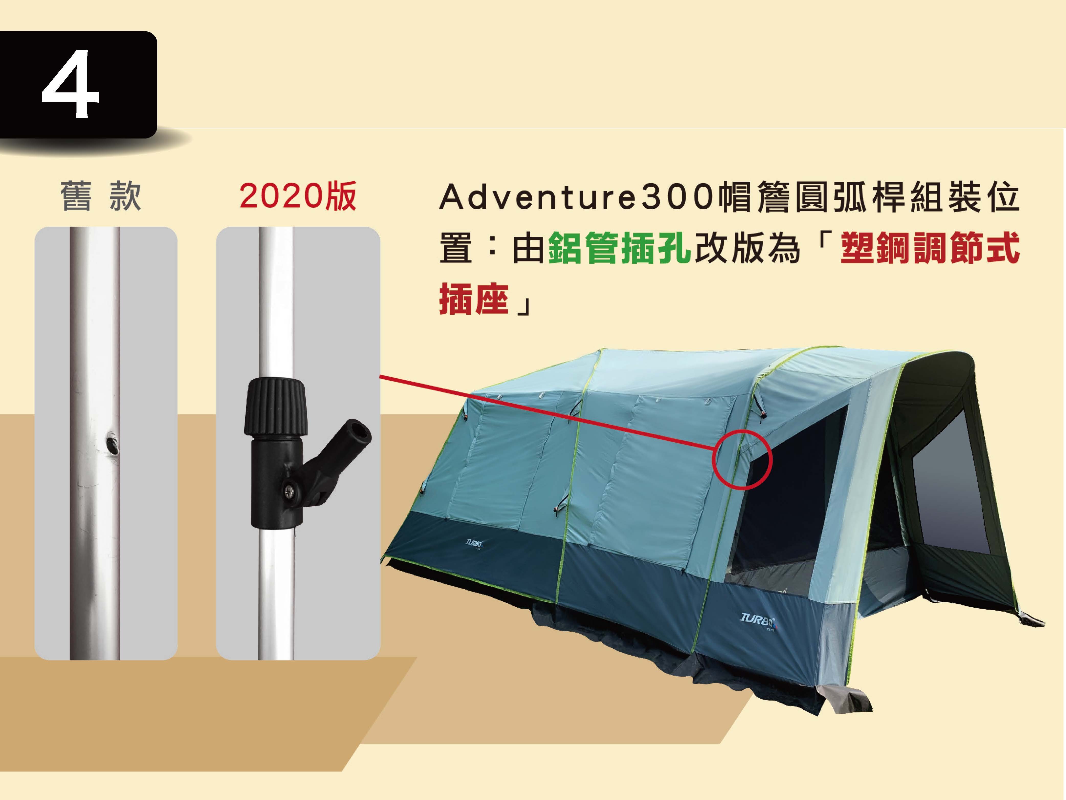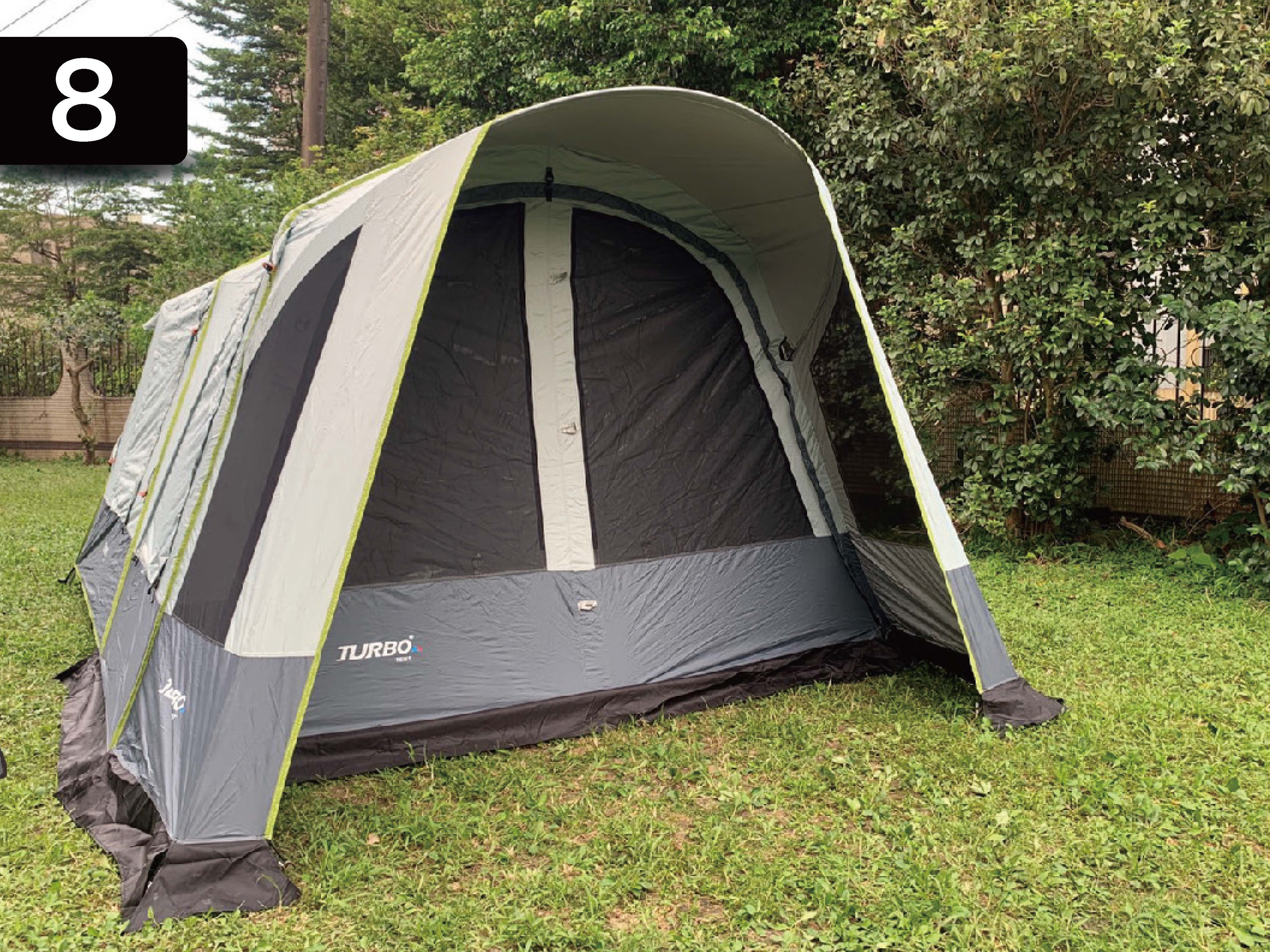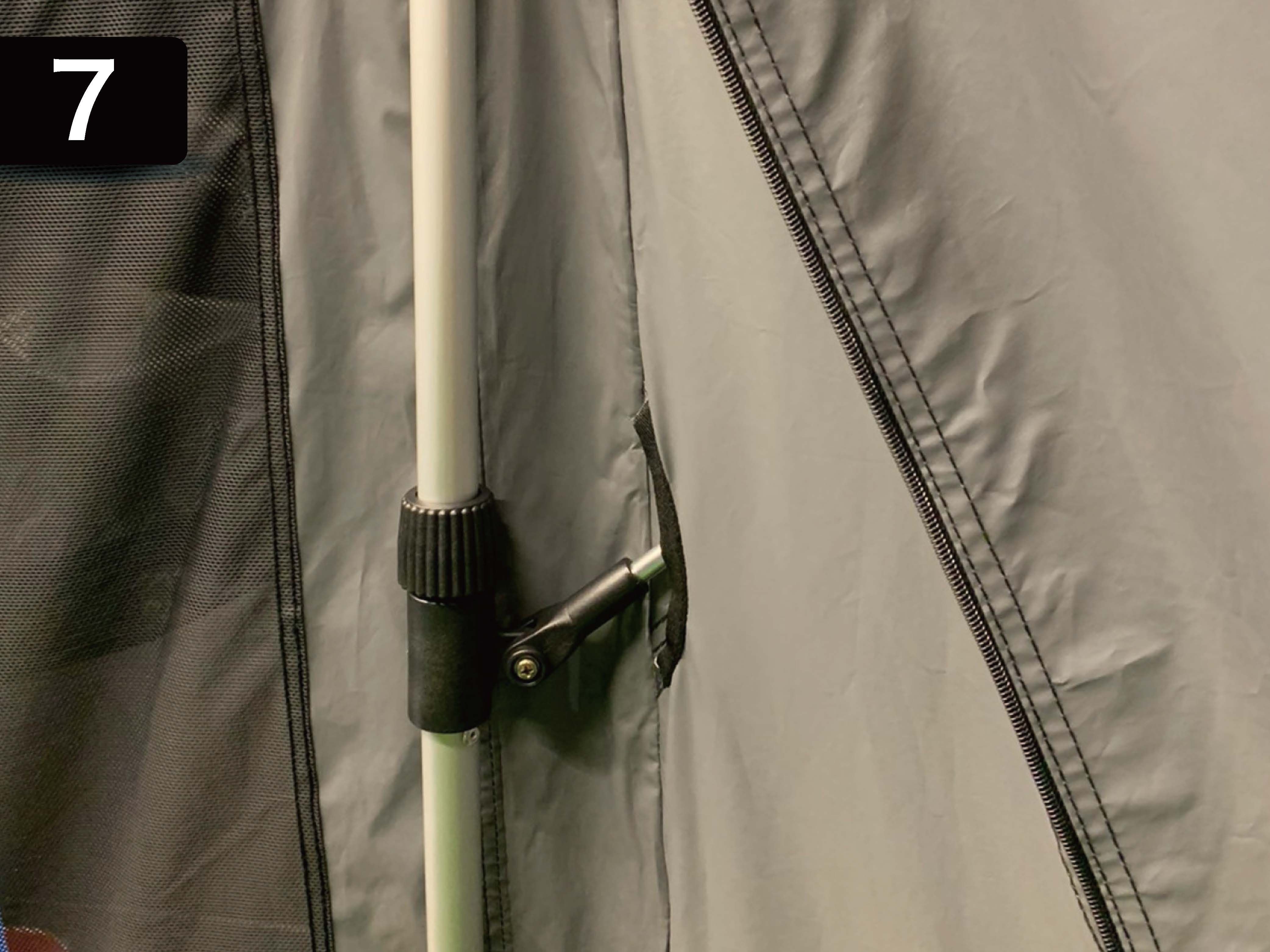 將屋簷桿穿進外帳前端的穿洞孔。前端兩側皆有洞孔,將屋簷桿穿過去。