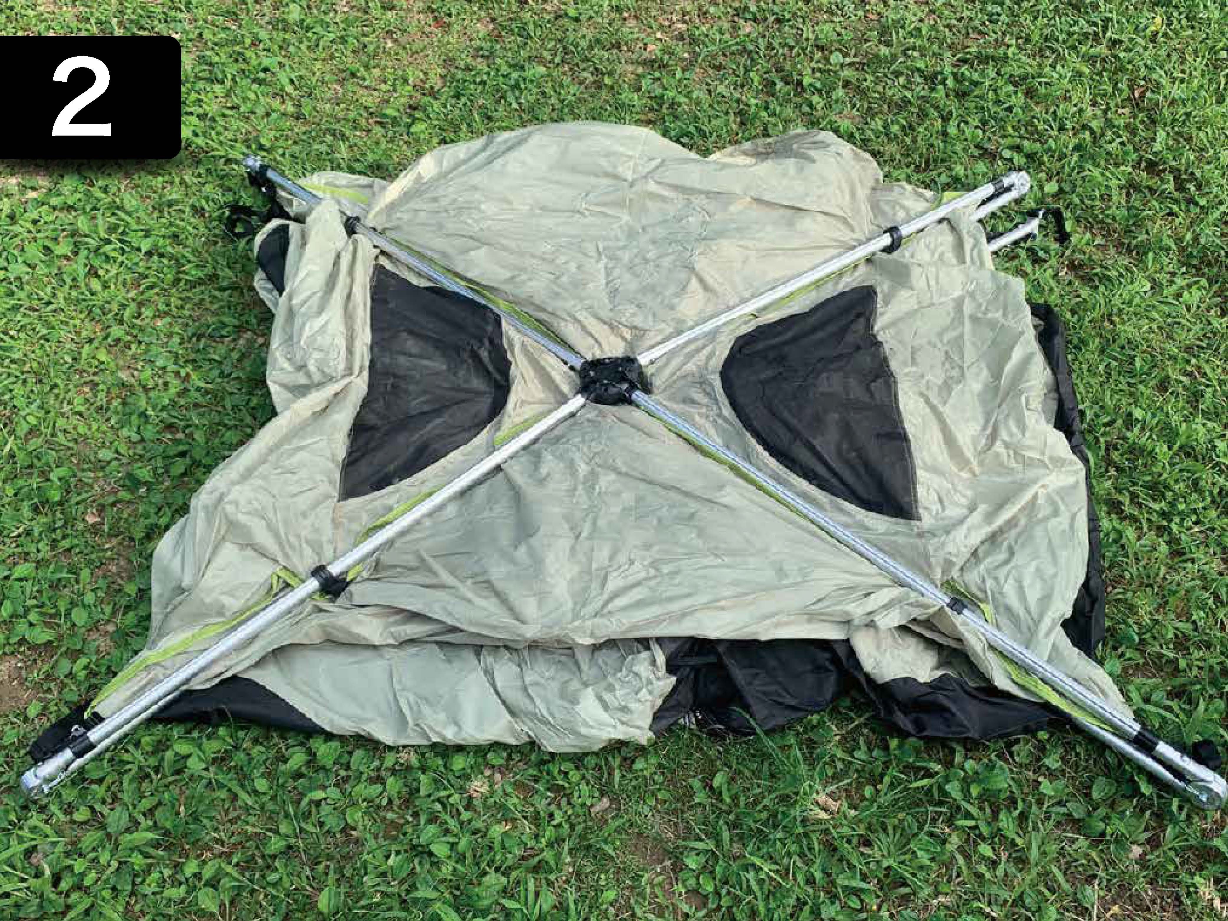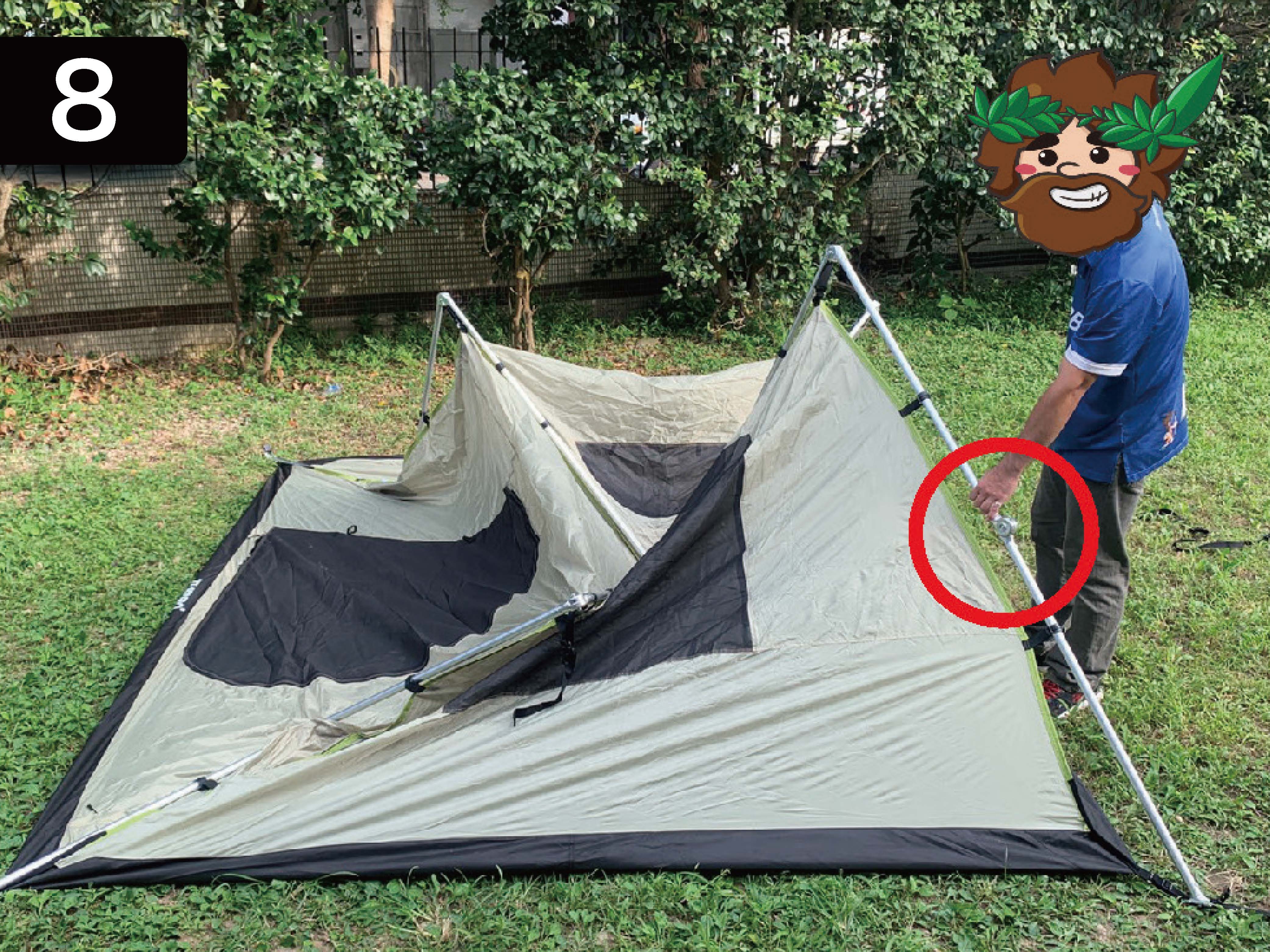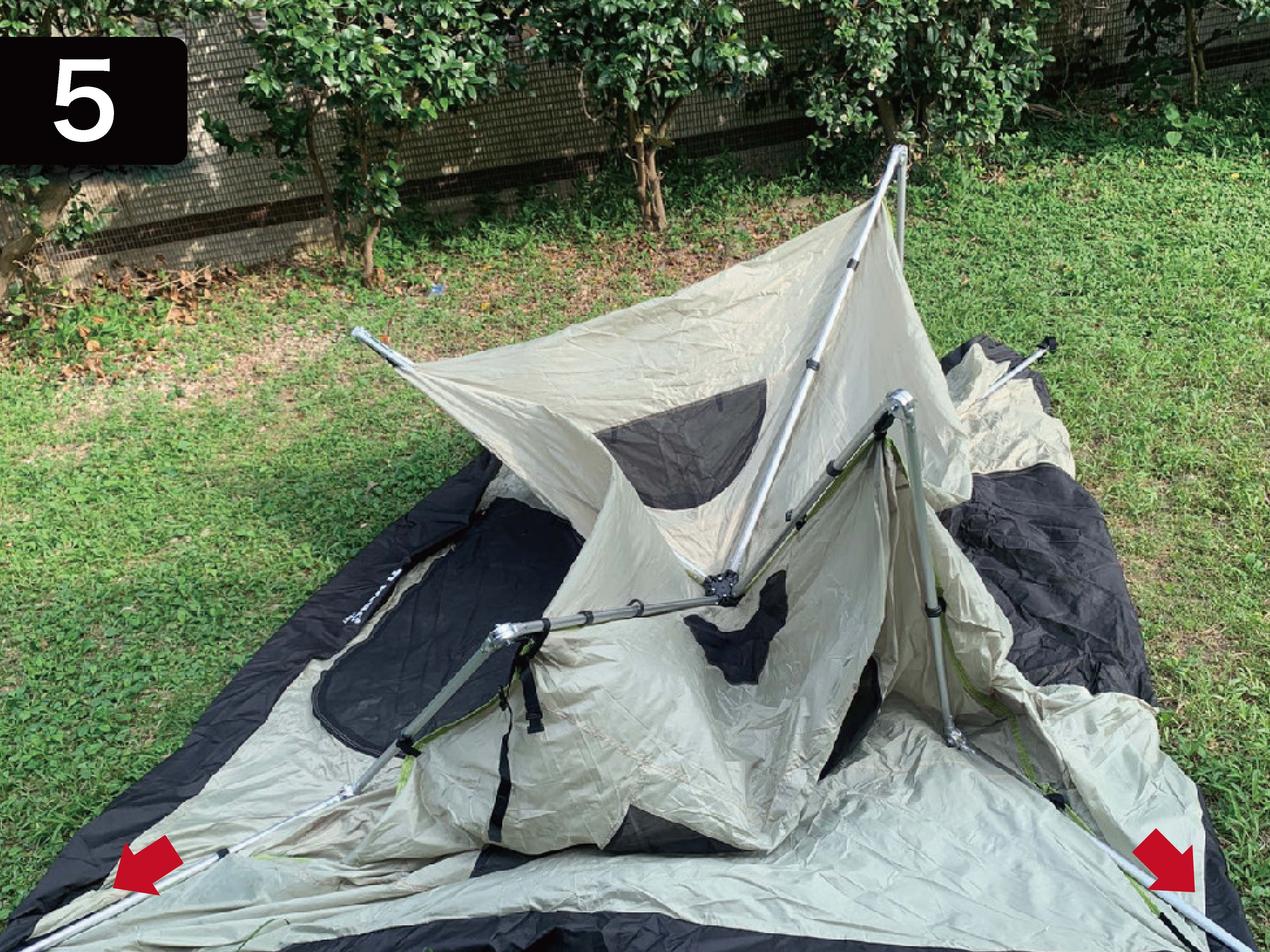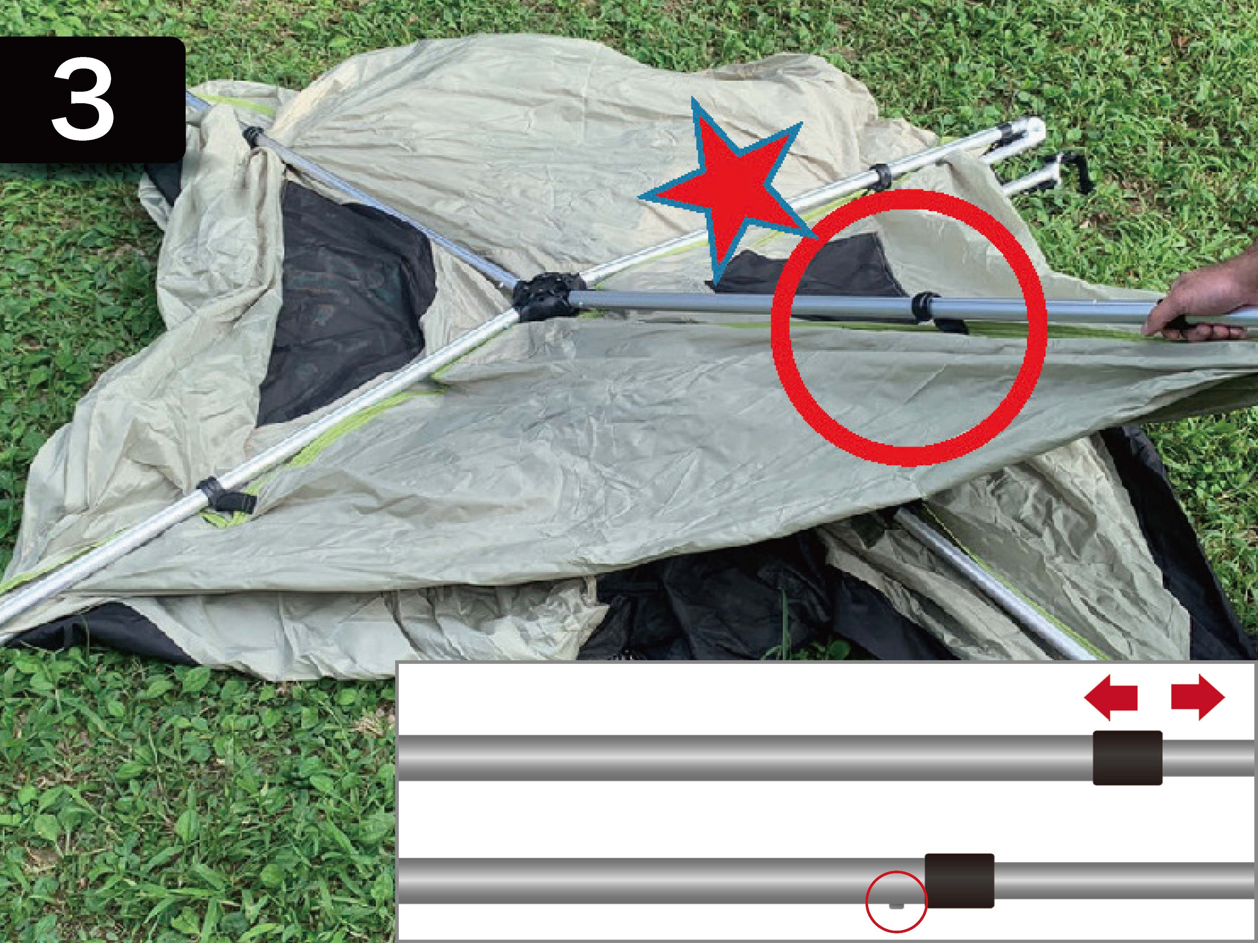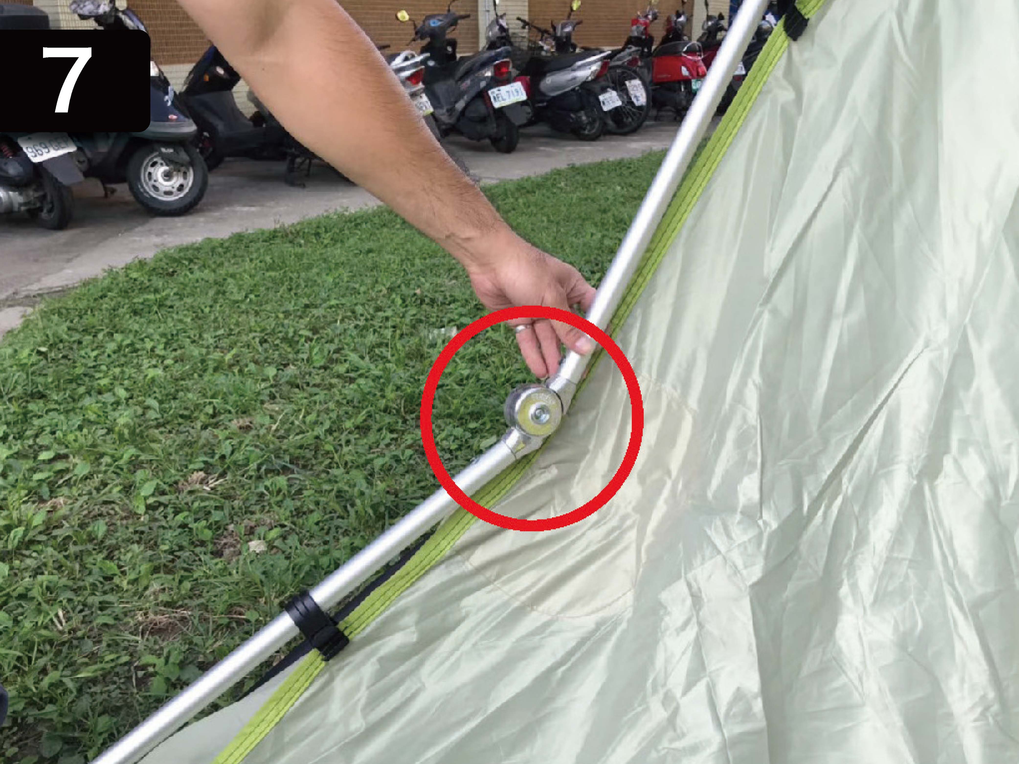 內帳骨架有個卡榫(紅圈處), 將桿子拉伸開來卡住固定。
