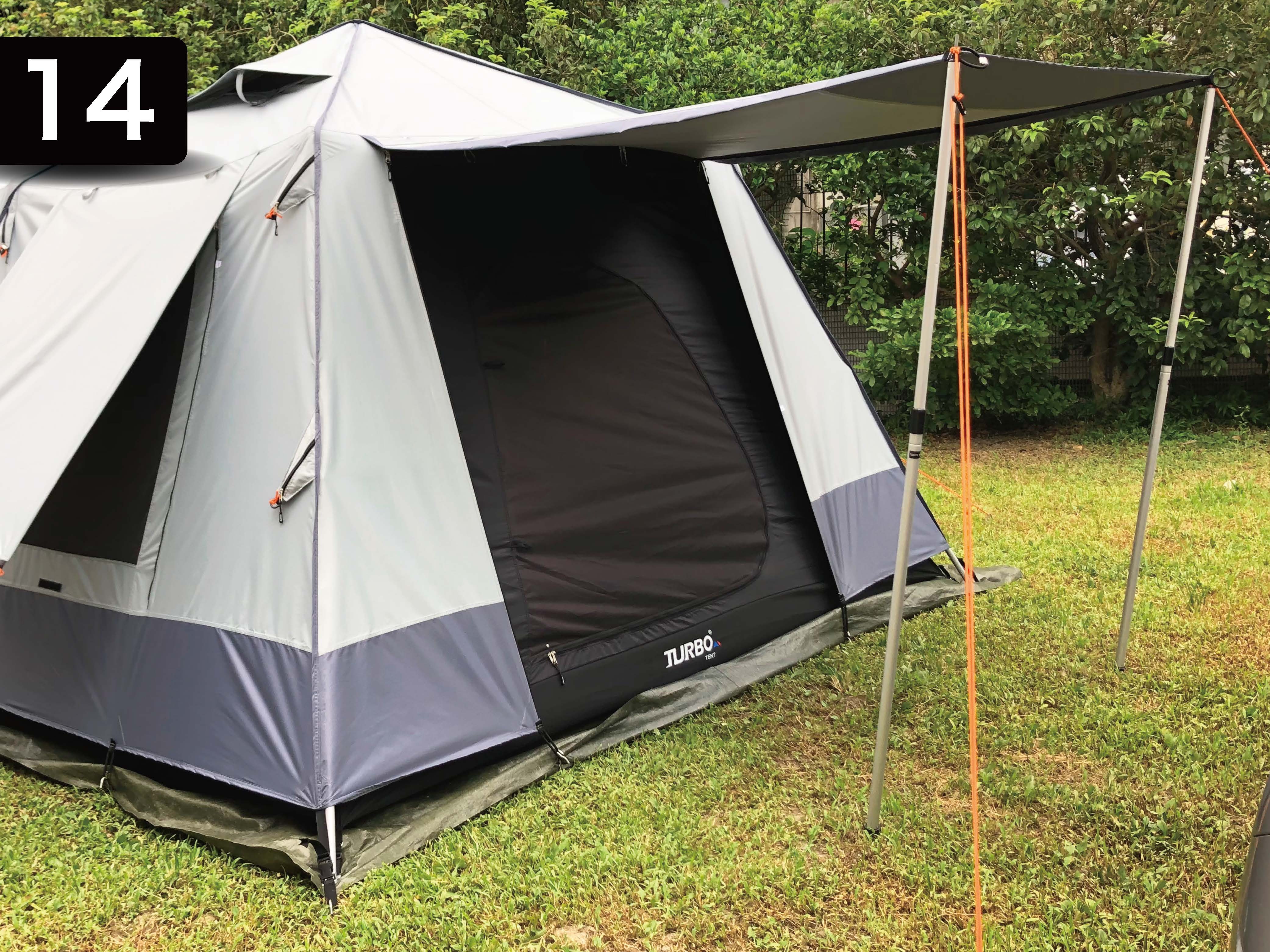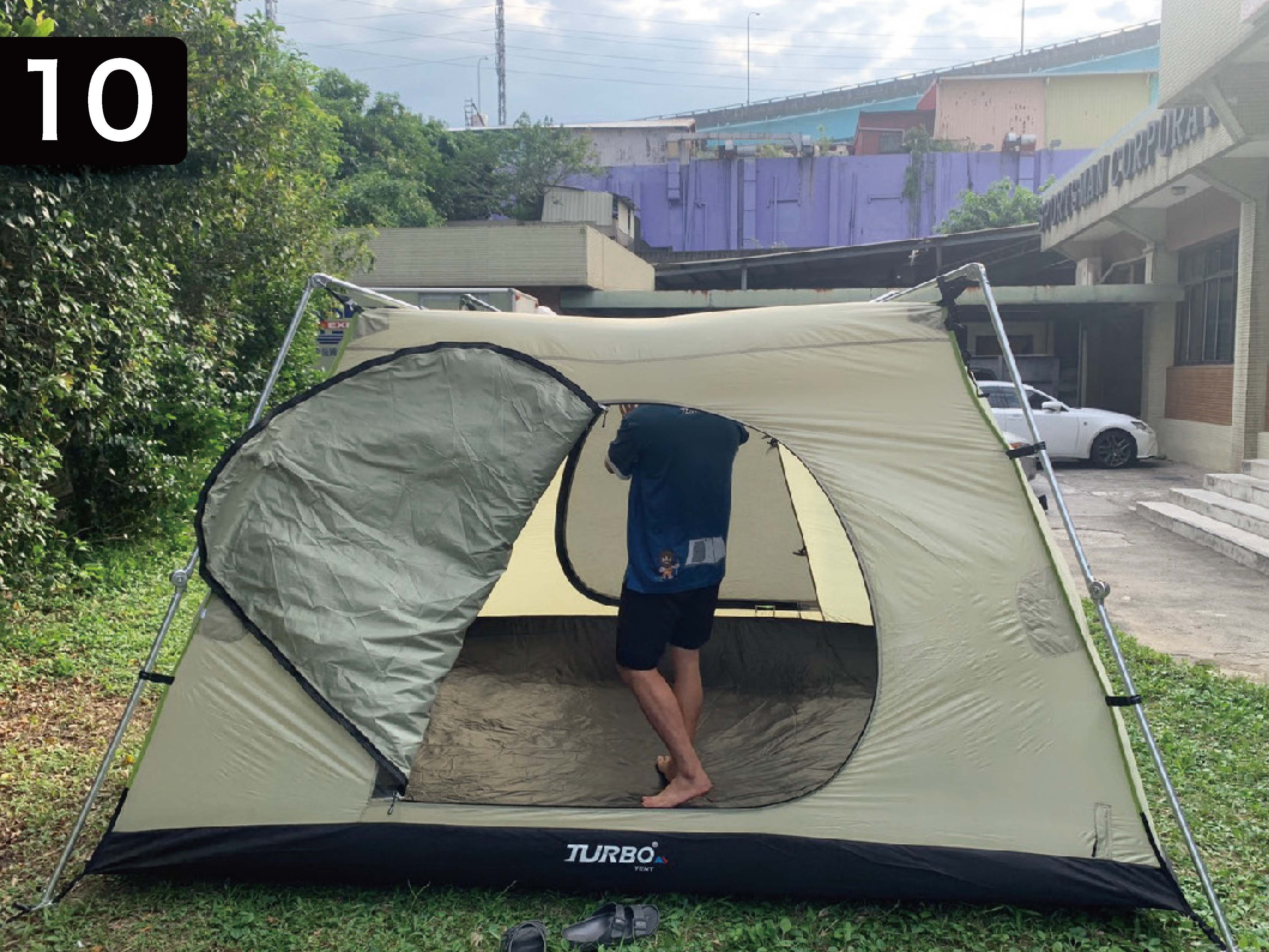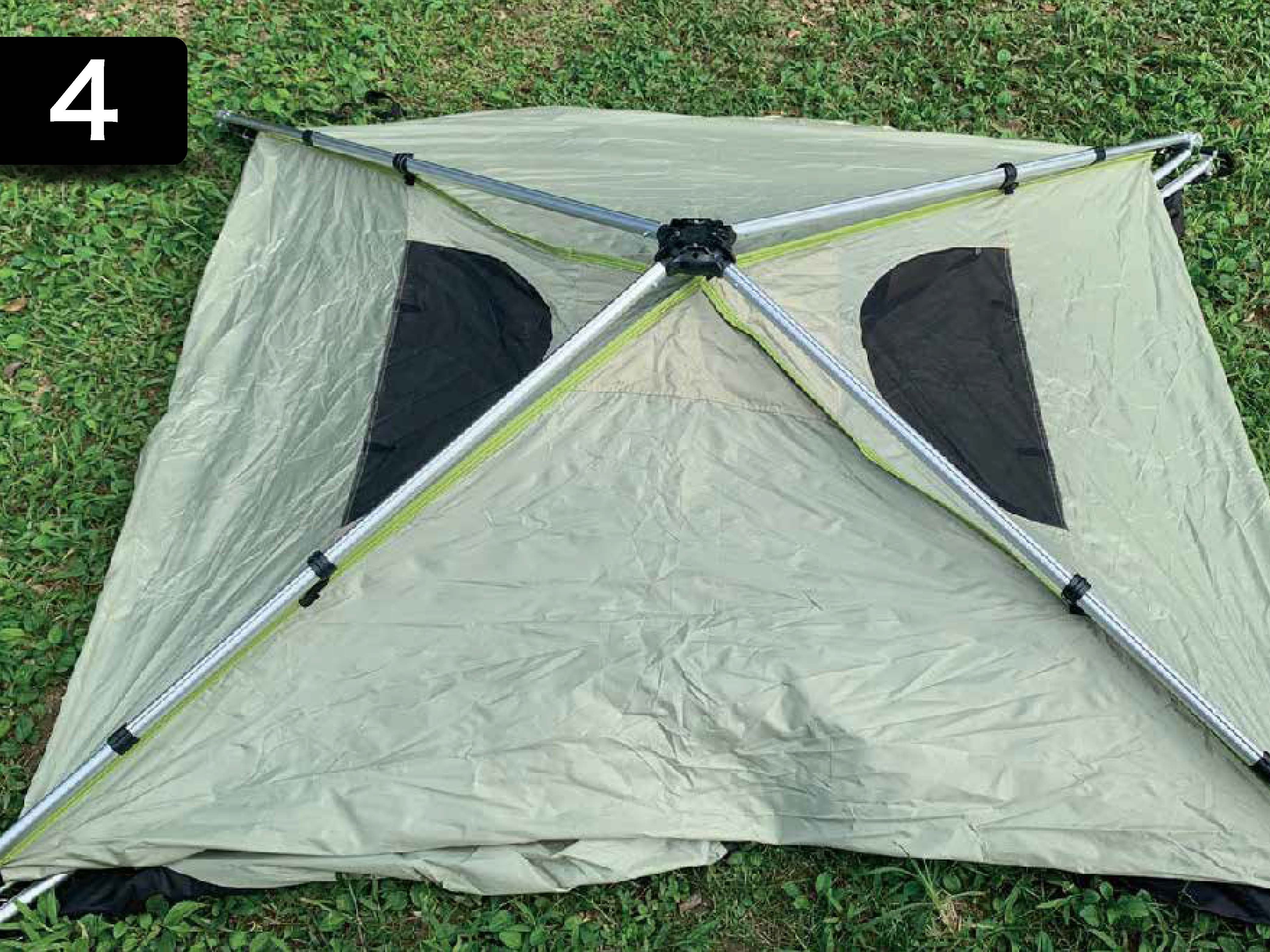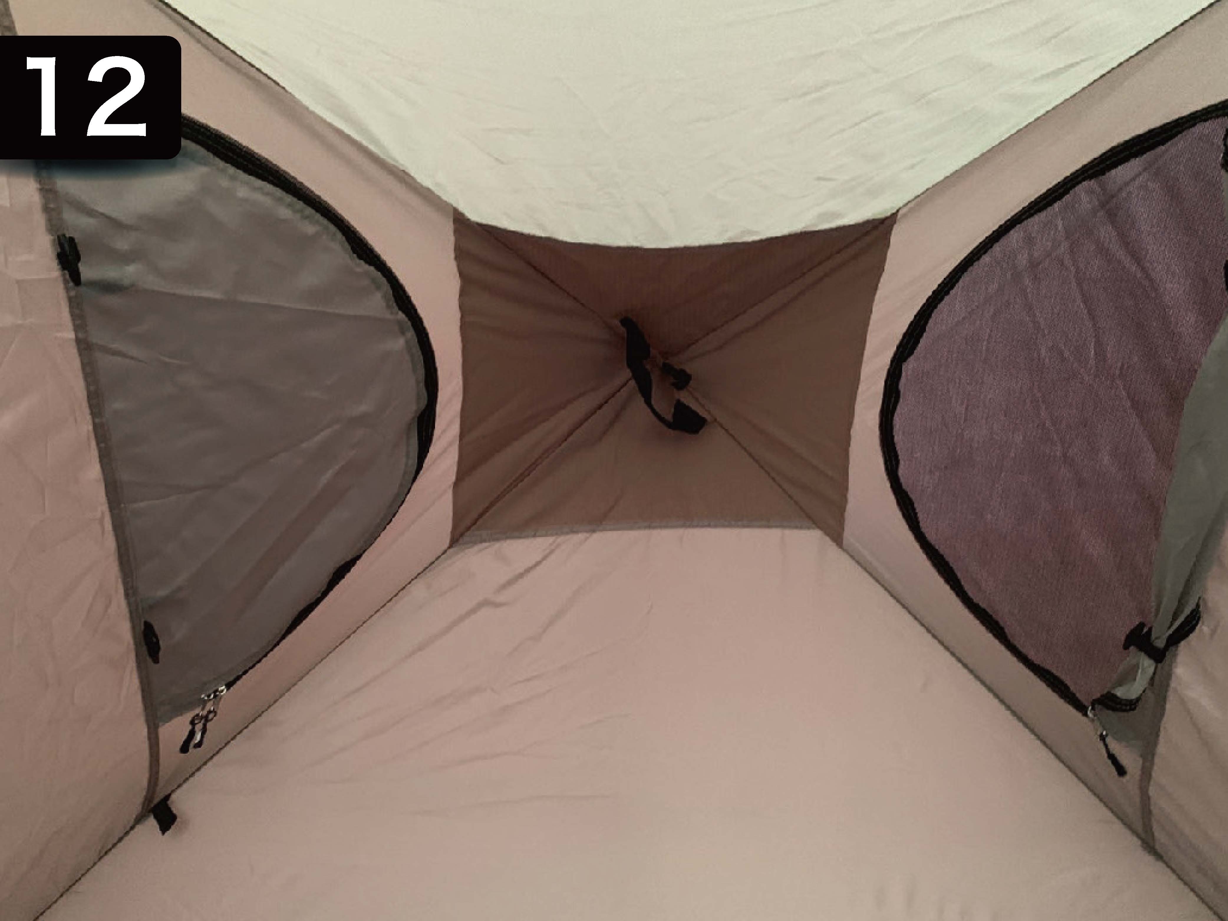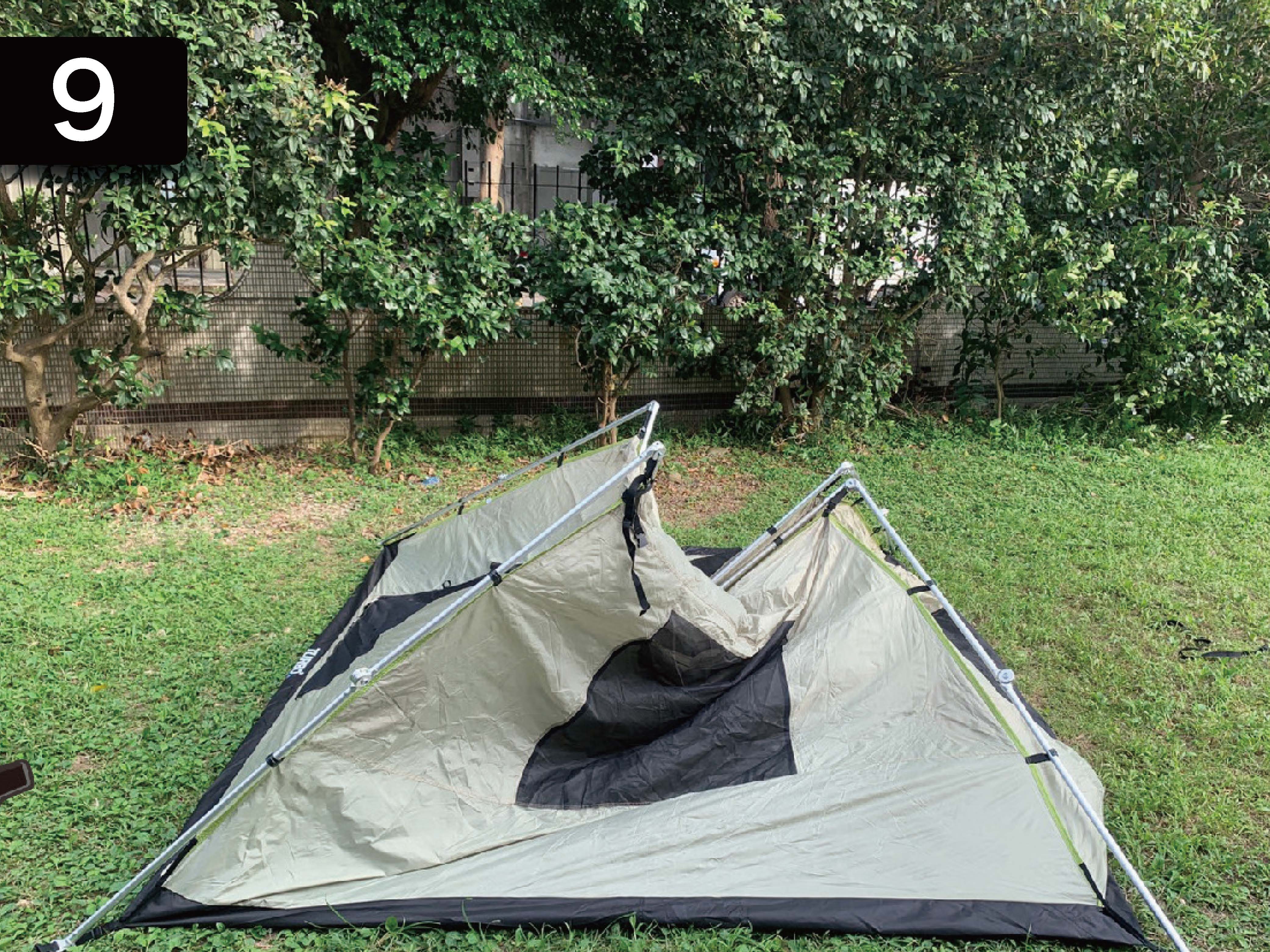 內帳撐起來後的模樣。(此時可進行營釘位置微調,使內帳四角拉撐平衡)