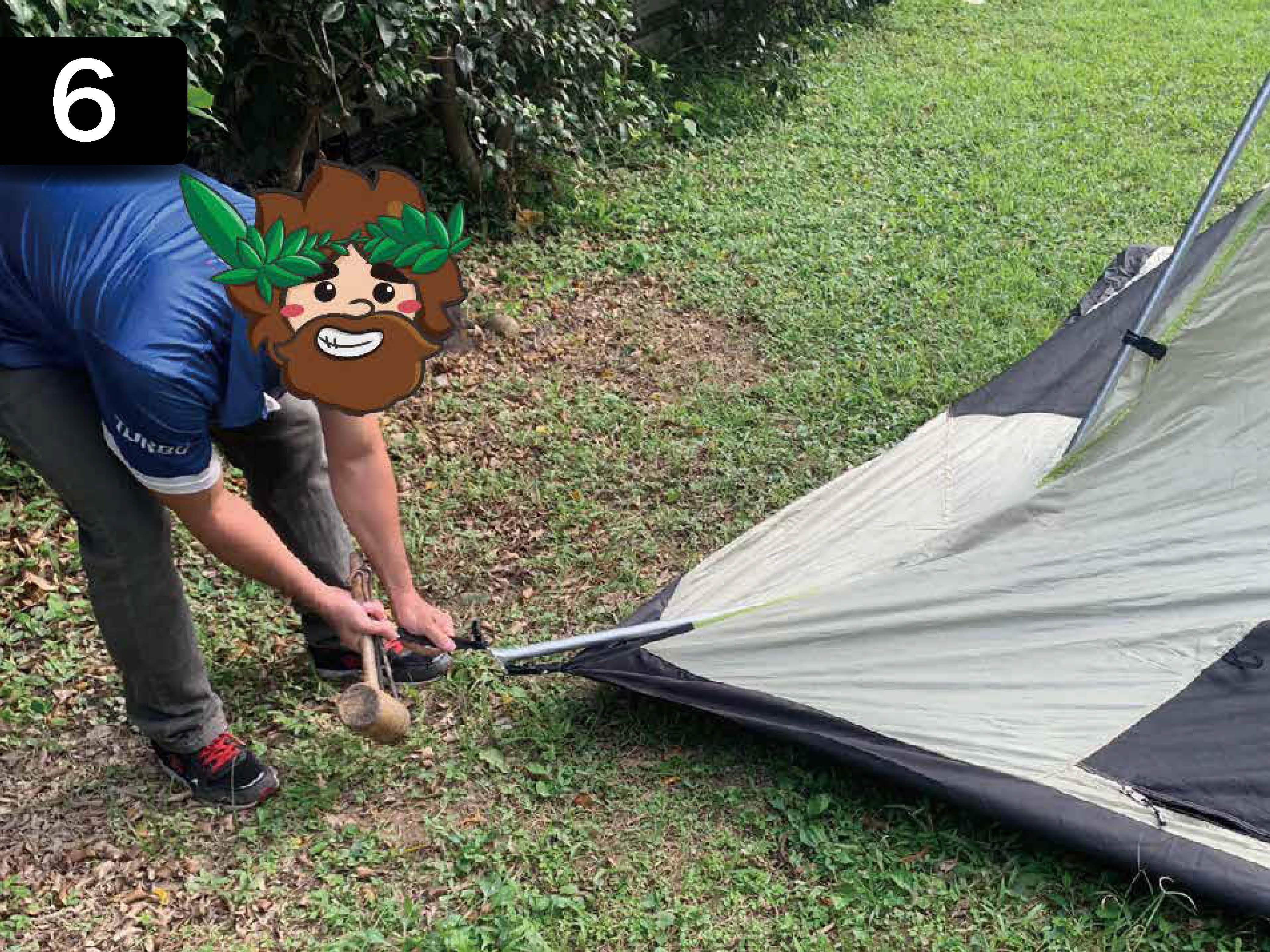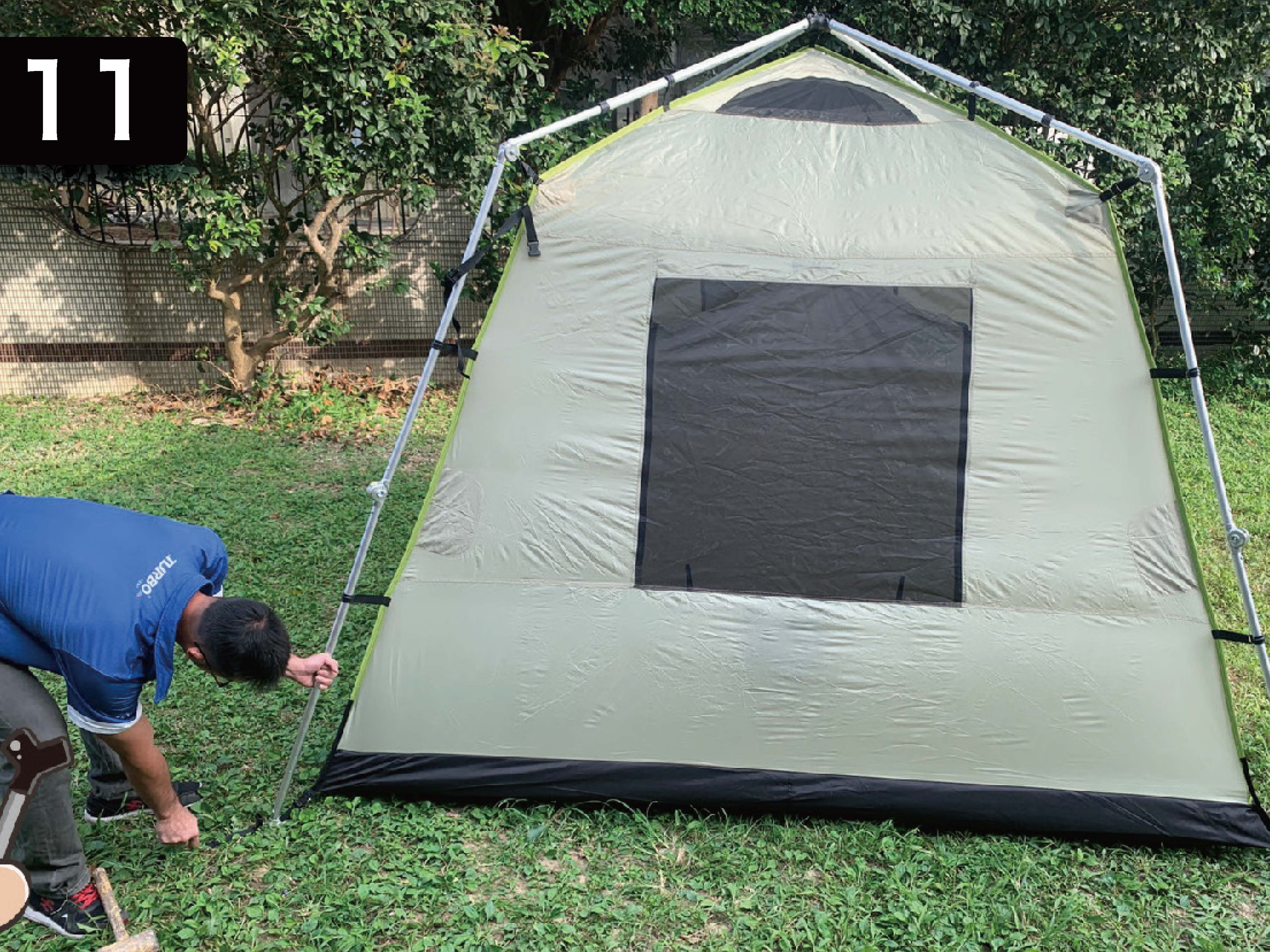 內帳底部必須是「拉撐」狀態,下釘時依「順時鐘」或「逆時鐘」擇一順序下釘。