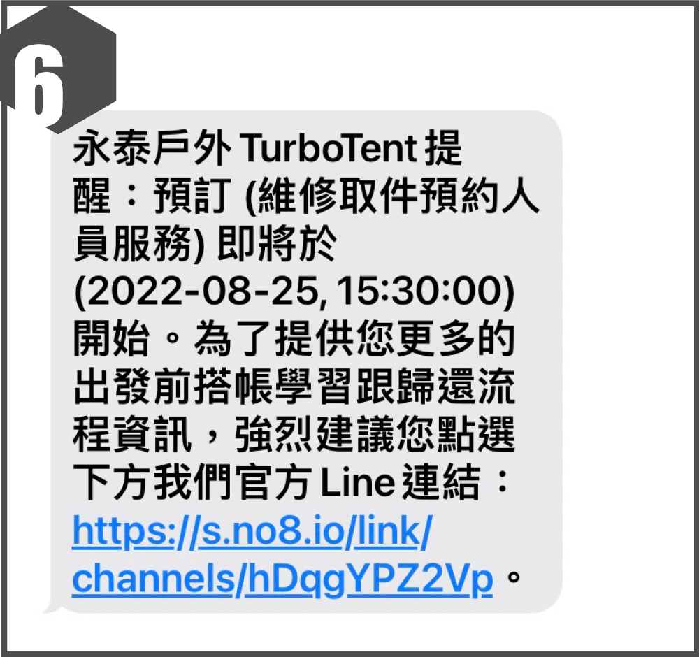 6.您的手機也會出現簡訊通知,代表您的預約已成功。