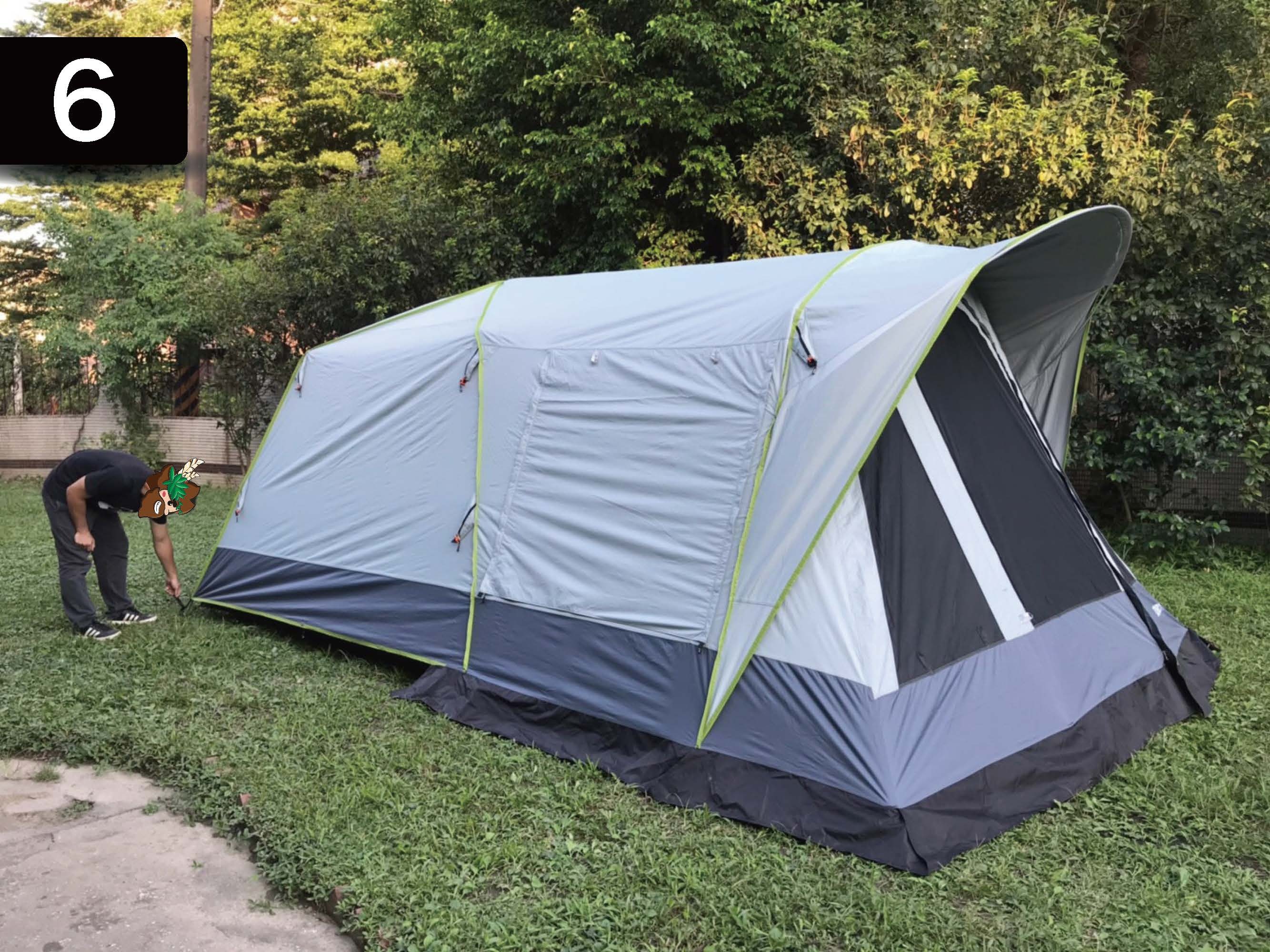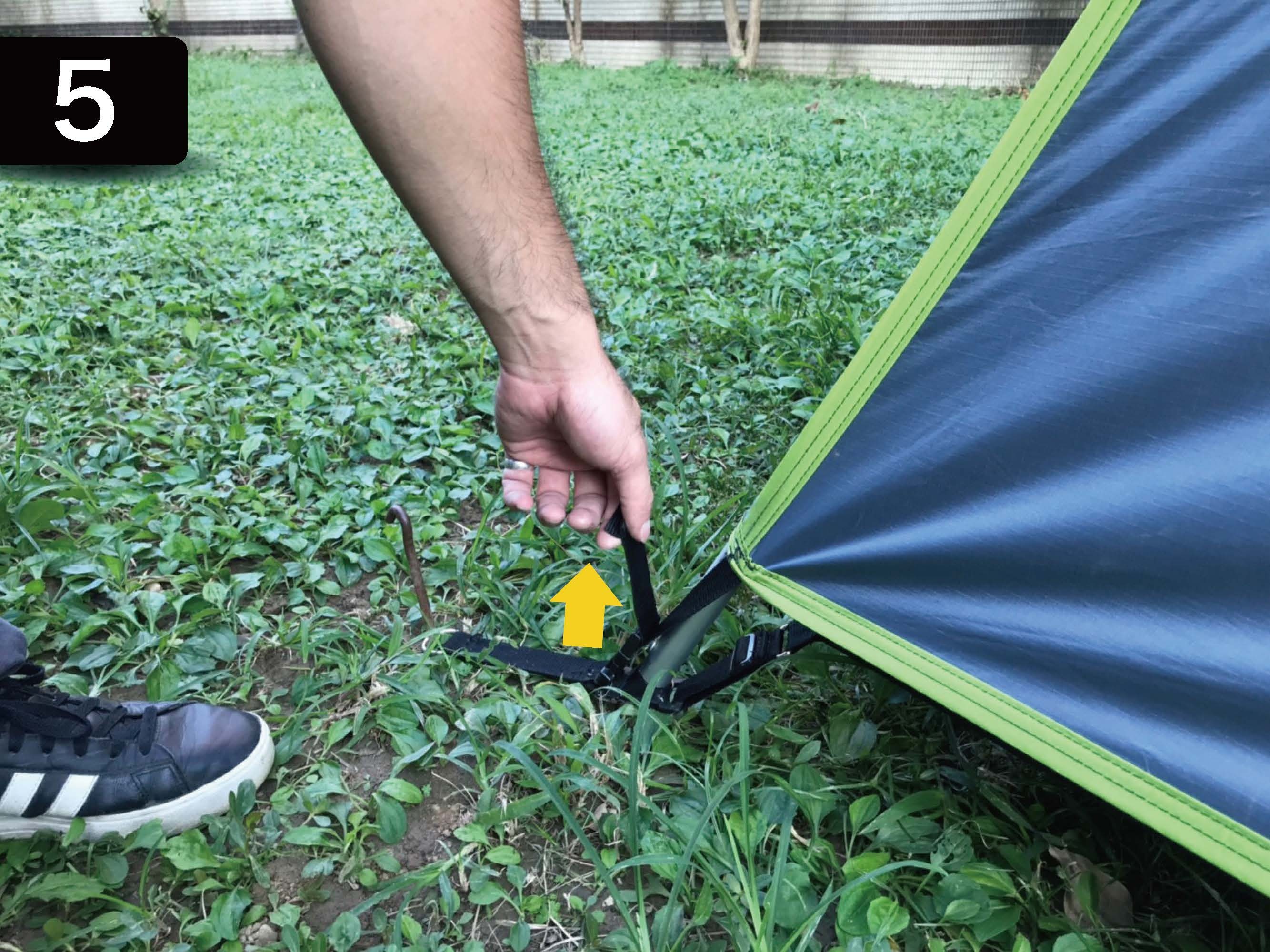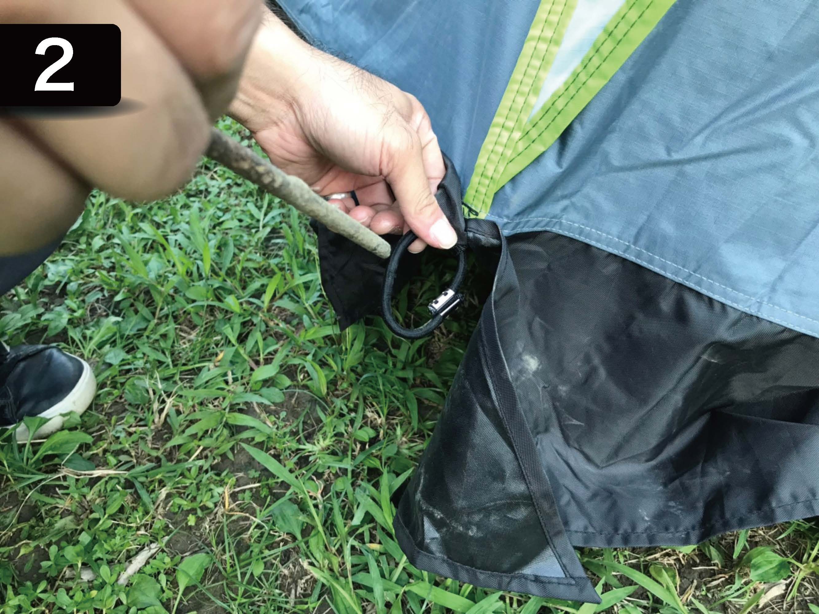 將外帳周邊所有營釘環都下釘固定好,帳篷才會穩固。