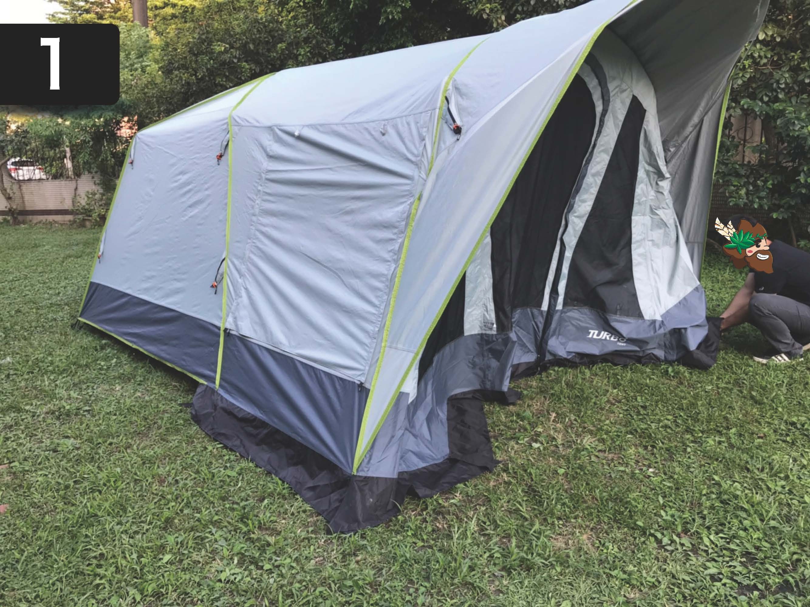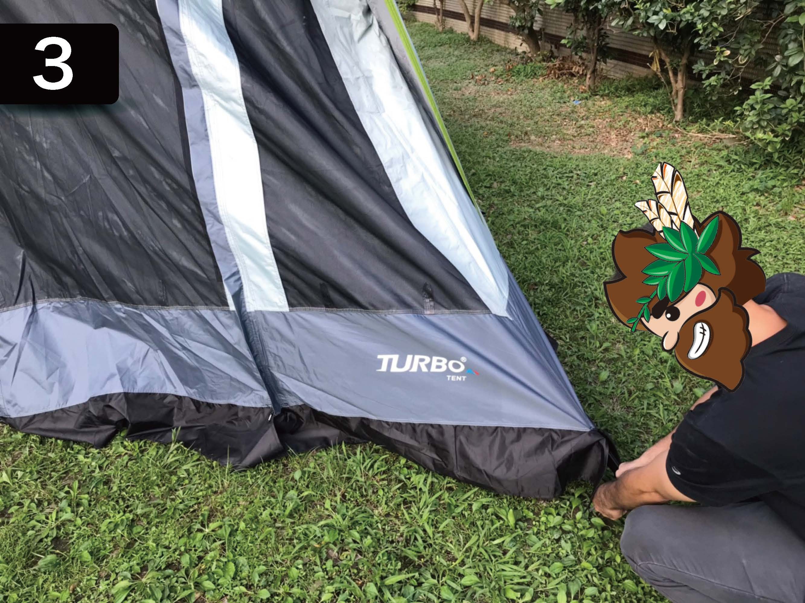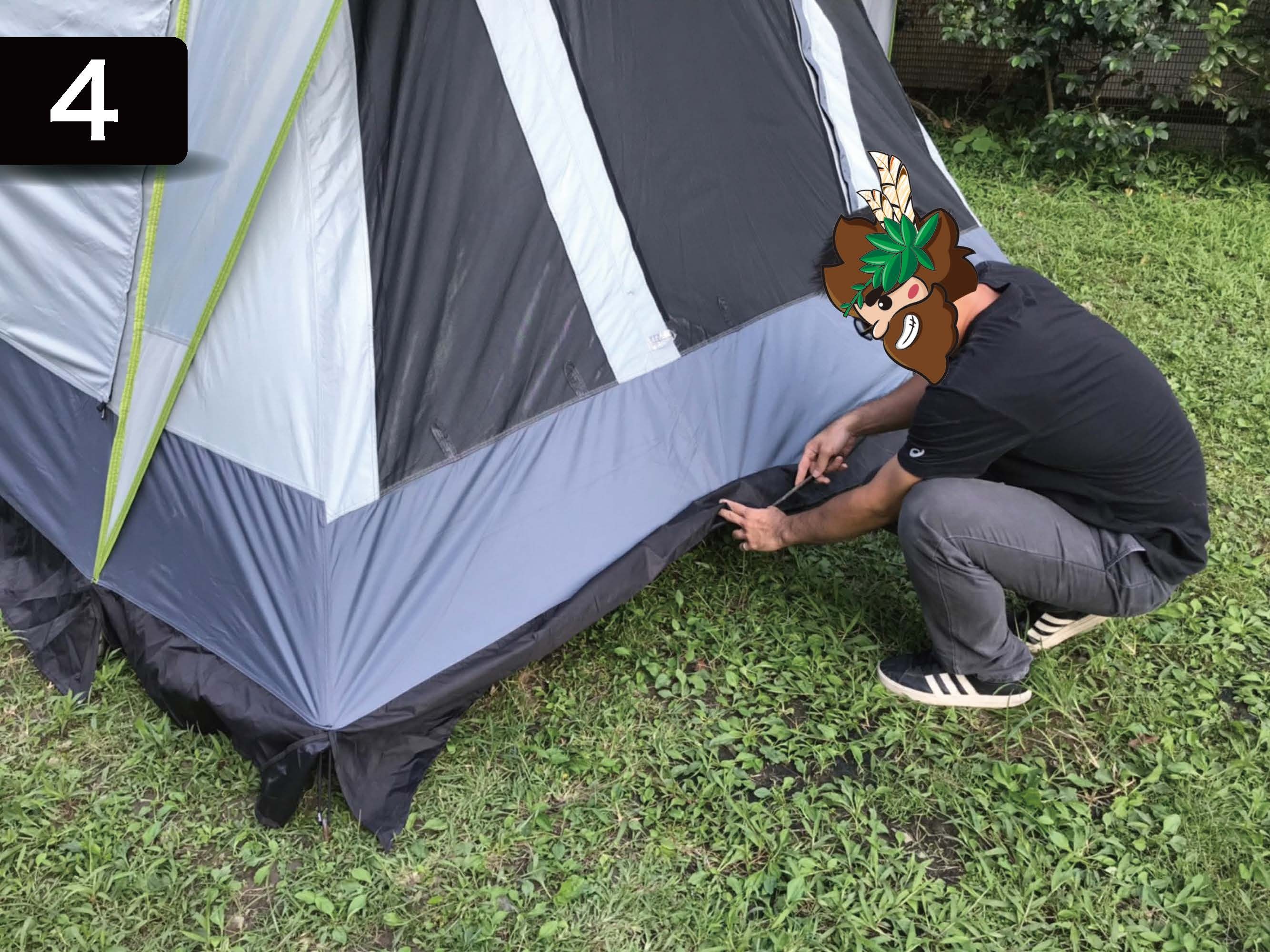 將外帳周邊所有營釘環都下釘固定好,帳篷才會穩固。