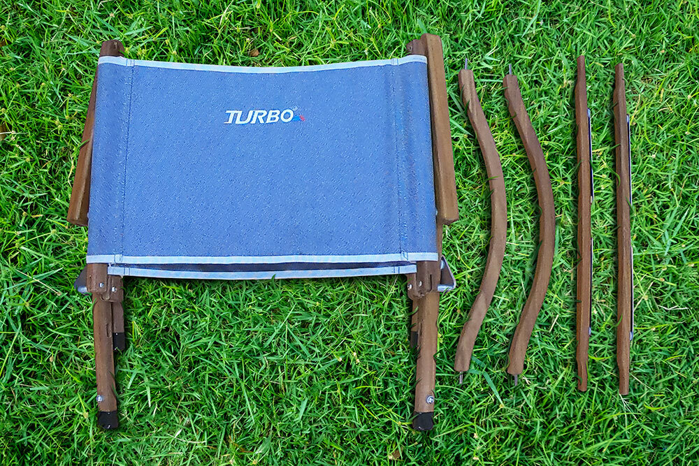 結構看似簡單,但整體的材質與力學設計都非常扎實。木材選用柚木高檔傢具品質,幫你的露營增添高雅氣息。設計上加入了彈性鋼片設計,擁有長時間使用仍能保持穩固的持久力。最後在椅面布料上使用了彈道尼龍布,其支撐性優於一般的300D特多龍數倍,可以支撐到250kg都不成問題,即使坐在椅子上的時間再長,屁股都能被好好的支撐住。